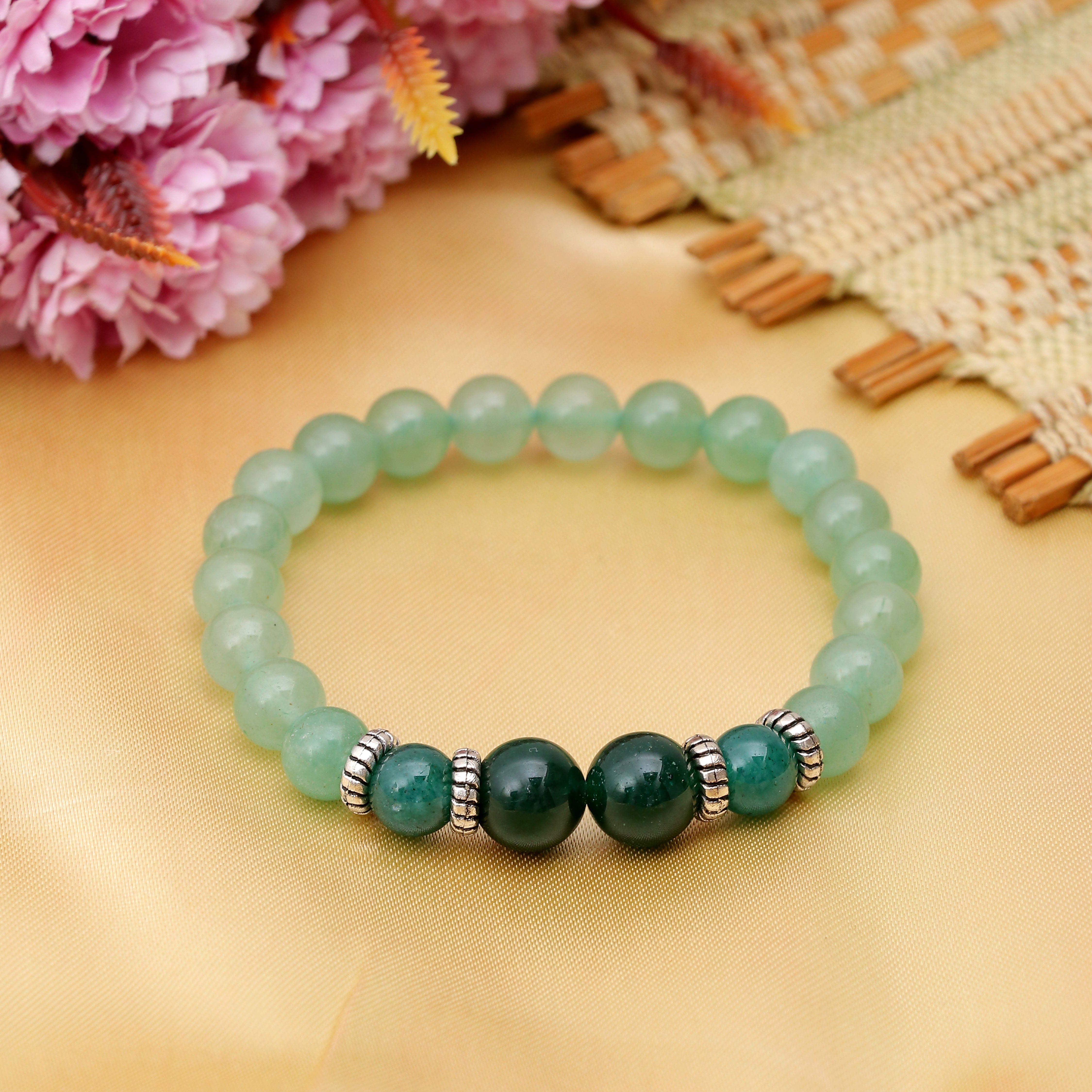 The Green Aventurine Bracelet is a symbol of good luck, abundance, and positive energy. Known for enhancing health, love, relationships, business opportunities, and wealth, this powerful green stone helps release negative thoughts and old limitations, shaping life with optimism and success. Often considered a substitute for emerald, green aventurine is ruled by Mercury and carries immense celestial energy.